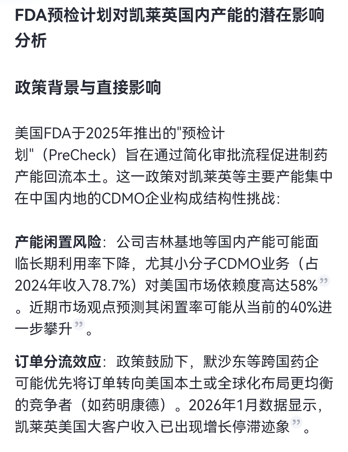 凯子产能闲置情况将更加严重。珍惜牛市,远离凯莱英。