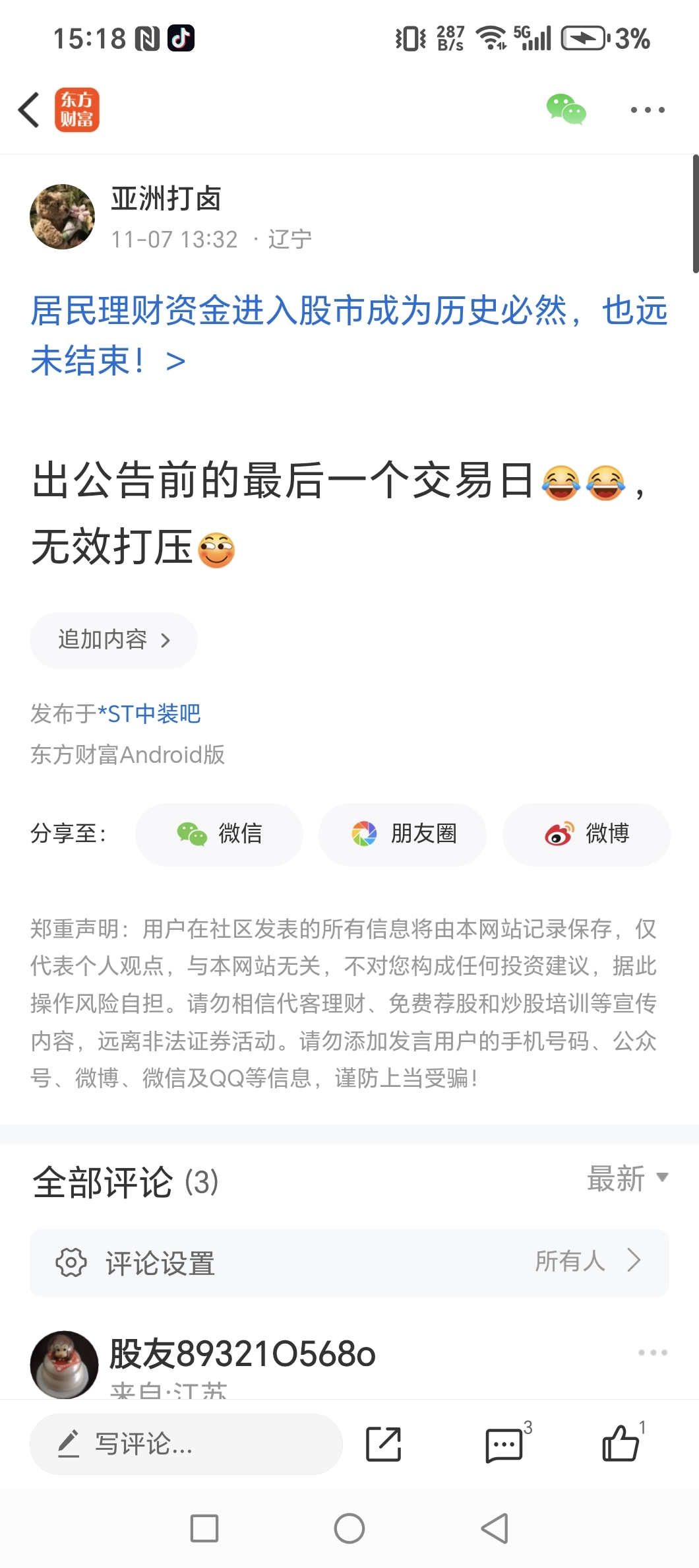 温馨提示: 1.根据《证券法》规定,禁止编造、传播虚假信息或者误导性信息,扰乱证券市场;2.用户在本社区发表的所有资料、言论等仅代表个人观点,与本网站立场无关,不对您构成任何投资建议。用户应基于自己的独立判断,自行决定证券投资并承担相应风险。《东方财富社区管理规定》