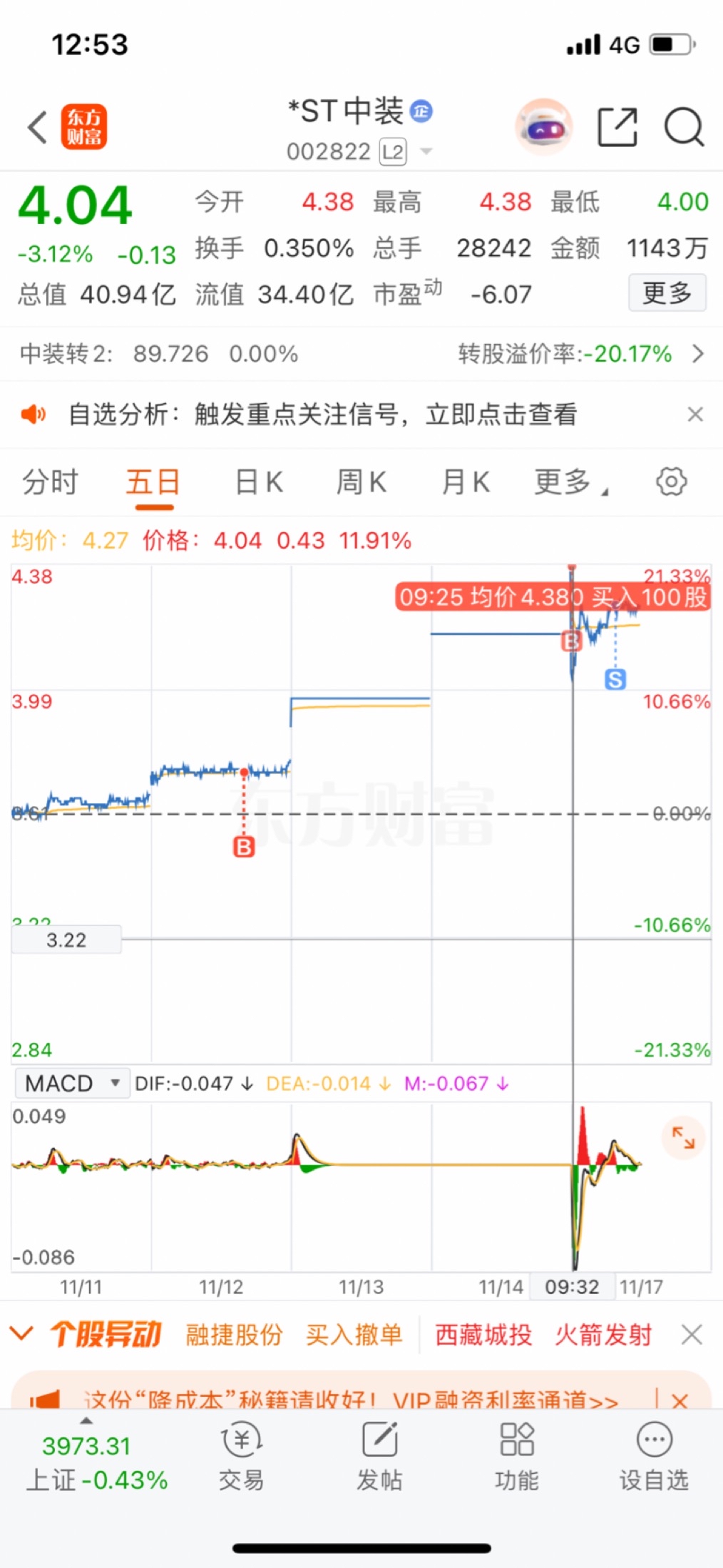 $*ST中装(SZ002822)$ 感谢中装建设,让我回拿到两个涨停板,谢谢。留一手,明天割肉,祝大家好运。