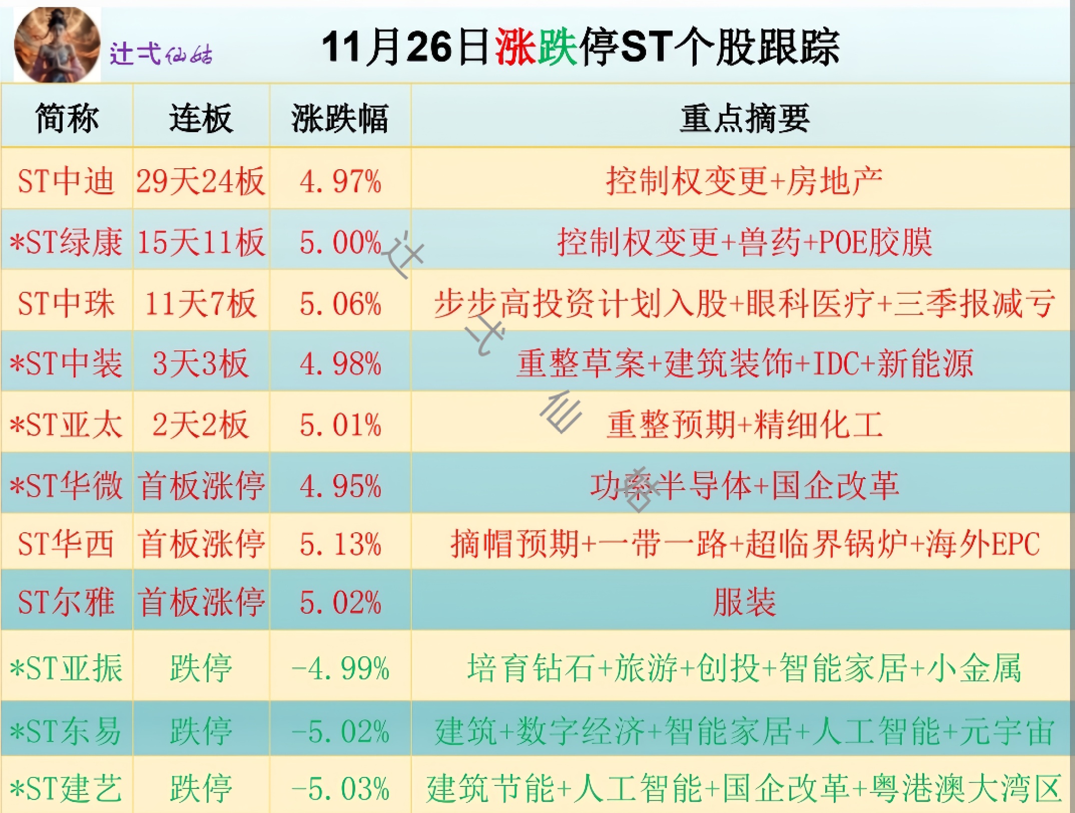 封板st股数据一览,不构成投资建议: