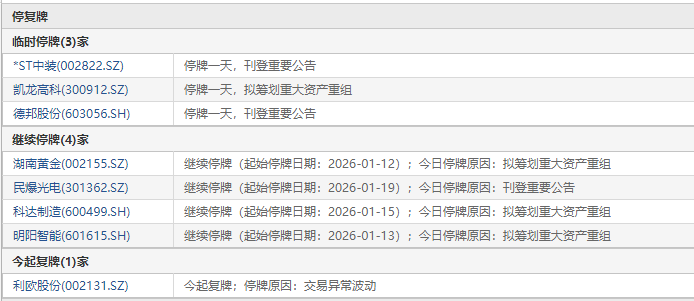 1月21日盘前停复牌汇总