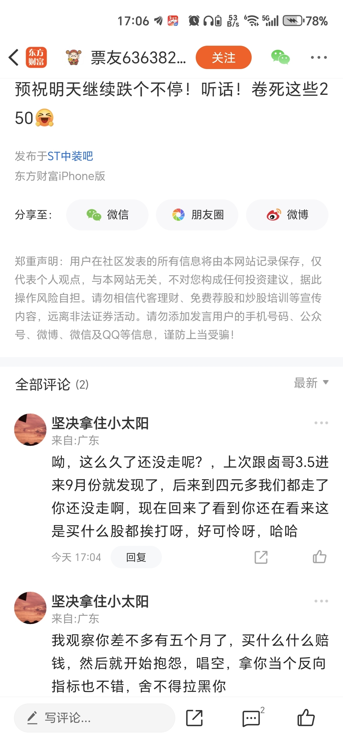 温馨提示: 1.根据《证券法》规定,禁止编造、传播虚假信息或者误导性信息,扰乱证券市场;2.用户在本社区发表的所有资料、言论等仅代表个人观点,与本网站立场无关,不对您构成任何投资建议。用户应基于自己的独立判断,自行决定证券投资并承担相应风险。《东方财富社区管理规定》