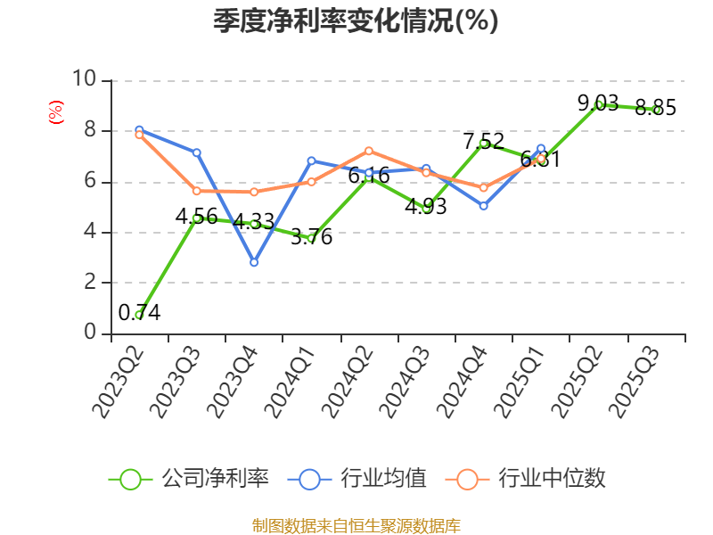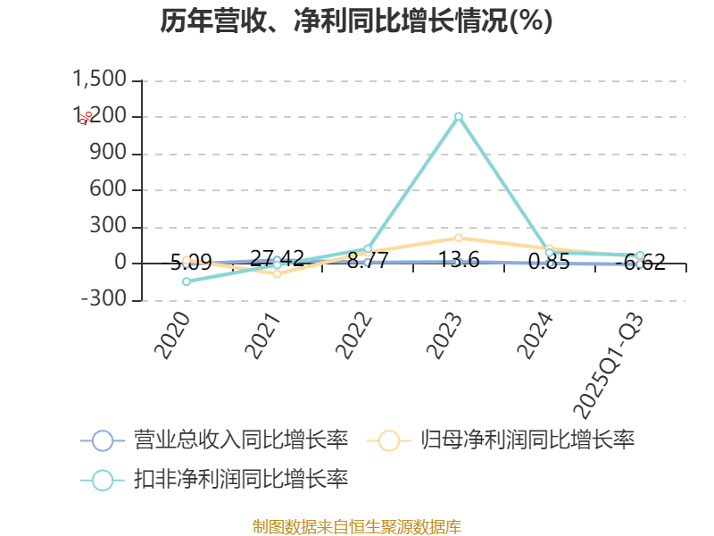 资产重大变化方面,截至2025年三季度末,公司固定资产较上年末减少3.06%,占公司总资产比重下降2.2个百分点;在建工程合计较上年末增加61.35%,占公司总资产比重上升1.45个百分点;存货较上年末减少3.64%,占公司总资产比重下降0.65个百分点;货币资金较上年末增加21.21%,占公司总资产比重上升0.64个百分点。