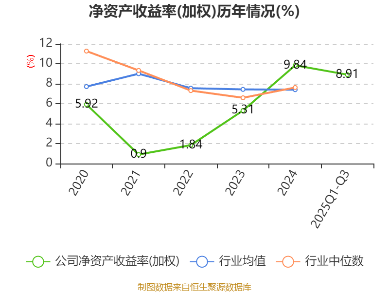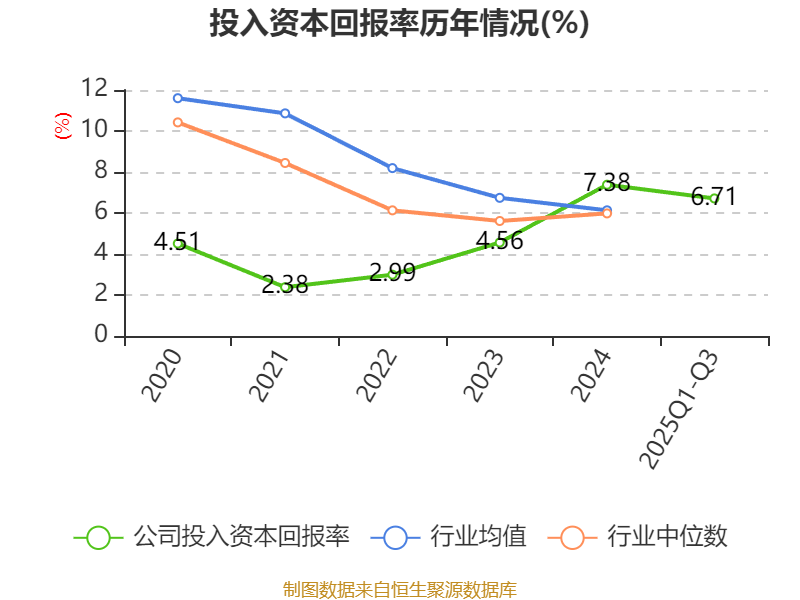 盈利能力方面, 2025年前三季度公司加权平均净资产收益率为8.91%,同比上升1.87个百分点。公司2025年前三季度投入资本回报率为6.71%,较上年同期上升1.72个百分点。
