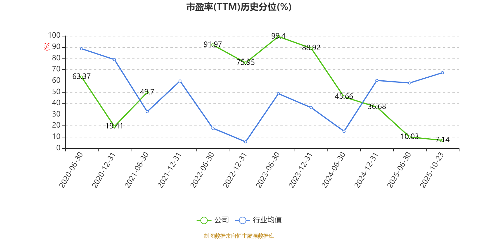 市盈率、市净率为负时,不显示当期分位数,会导致折线图中断。