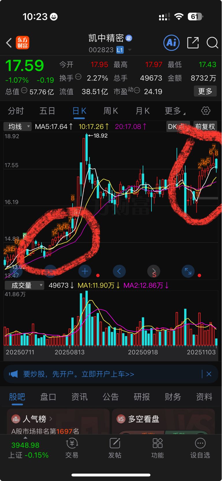 $凯中精密(SZ002823)$ 需要走的这么一致吗
