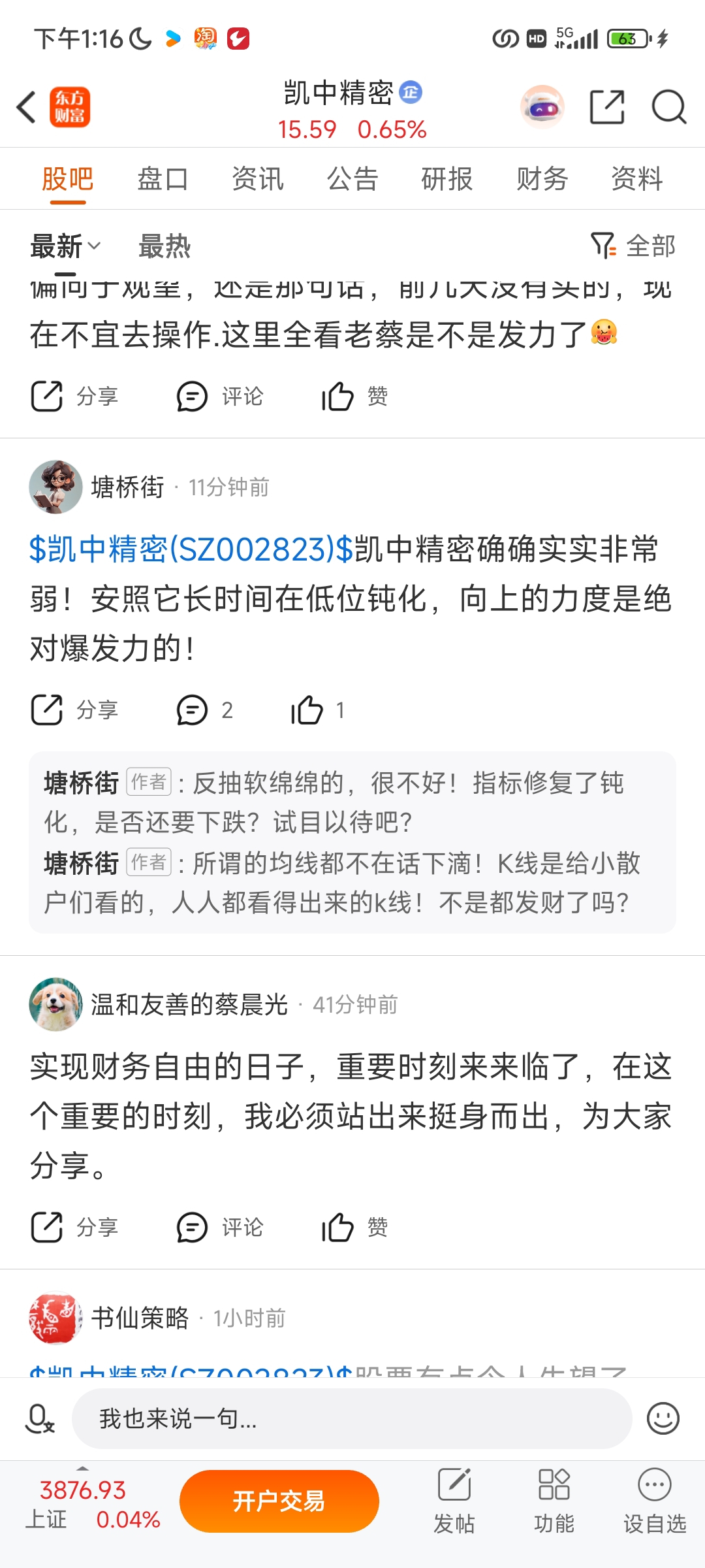 $凯中精密(SZ002823)$ 是谁我就不点名了吧!上周信誓旦旦的说本周不超过周三绝对有一波浩浩荡荡的拉升,结果打脸删贴子,忽悠小散去接盘。