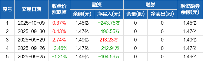 和胜股份:融资净偿还243.75万元,融资余额1.45亿元(10-09)