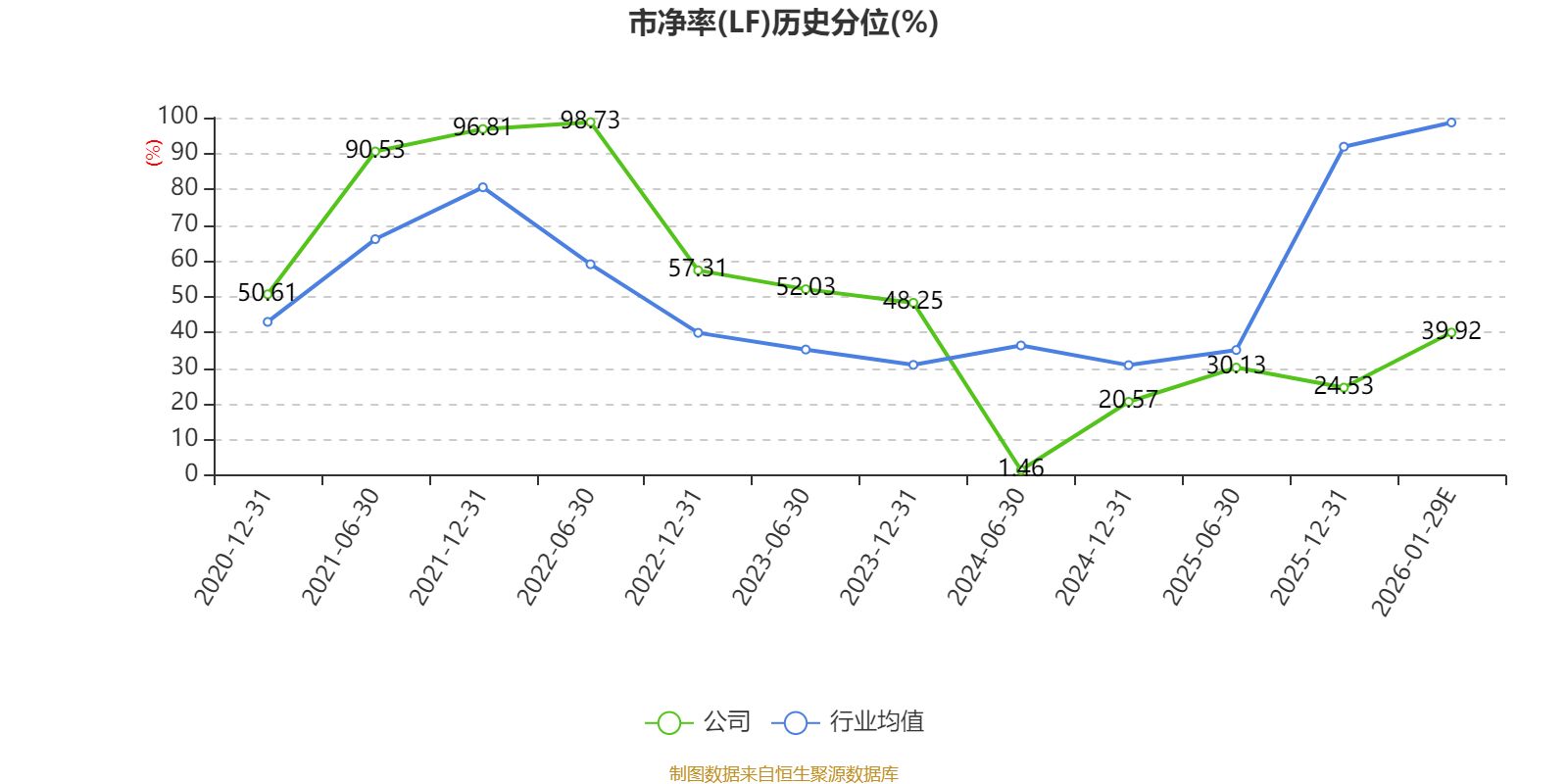 市盈率、市净率为负时,不显示当期分位数,会导致折线图中断。