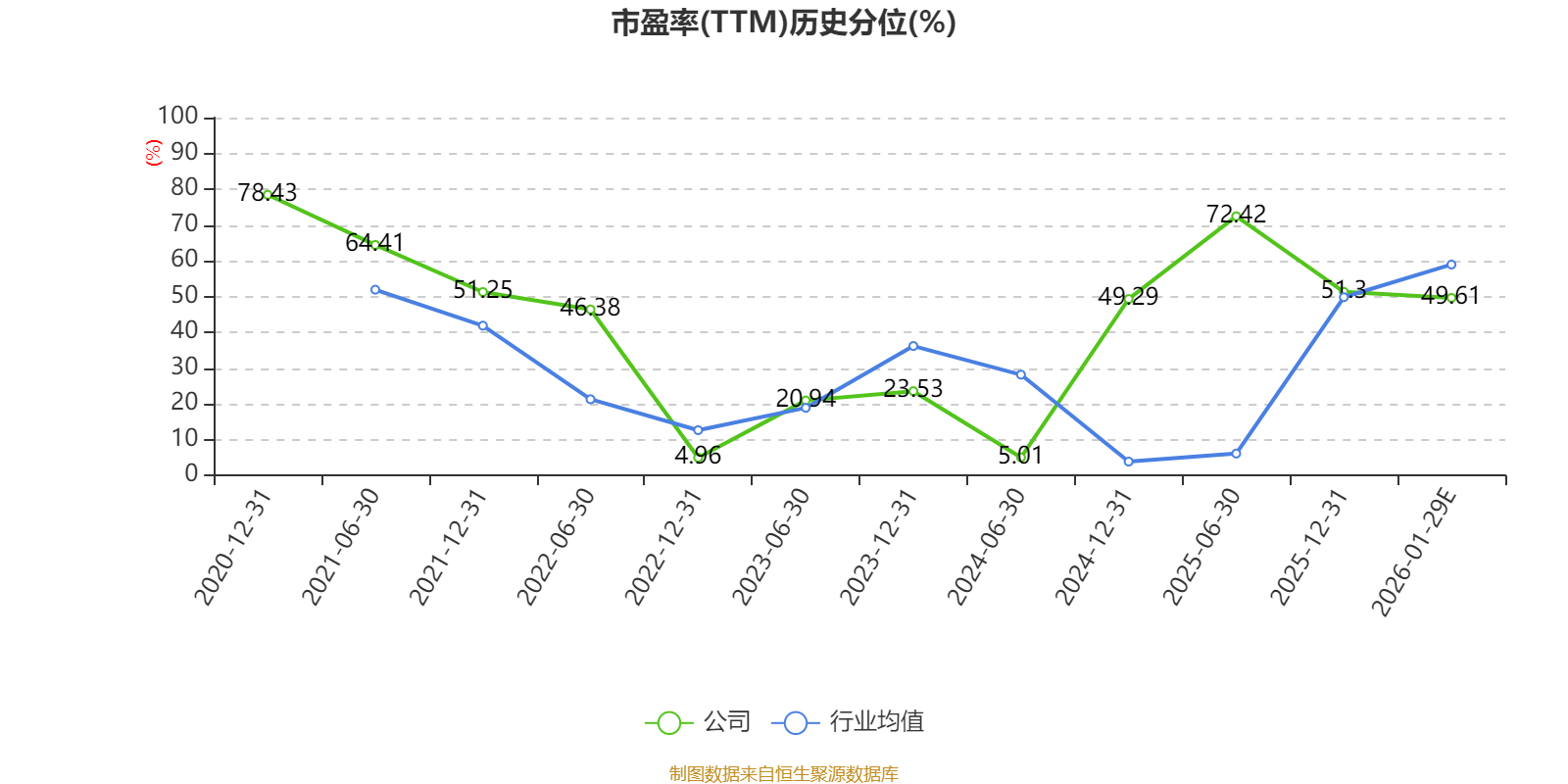 以本次披露业绩预告均值计算,公司近年市盈率(TTM)图如下所示: