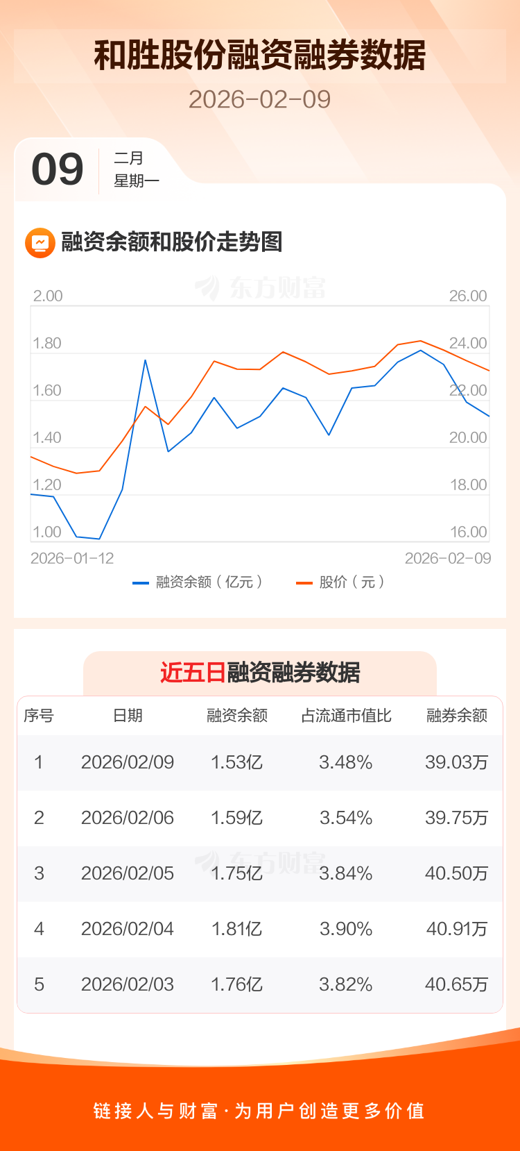 交易所最新数据显示,和胜股份于2026年2月9日获融资买入1870.77万元,融资偿还2441.77万元,当日融资净偿还571.01万元。目前,该股融资余额1.53亿,占流通市值比例为3.48%。