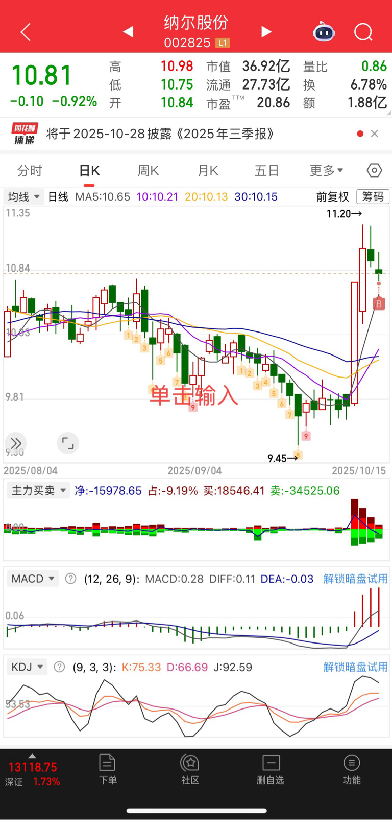 $纳尔股份(SZ002825)$ 今天进 这支 期待明日表现#强势机会# #实盘记录#