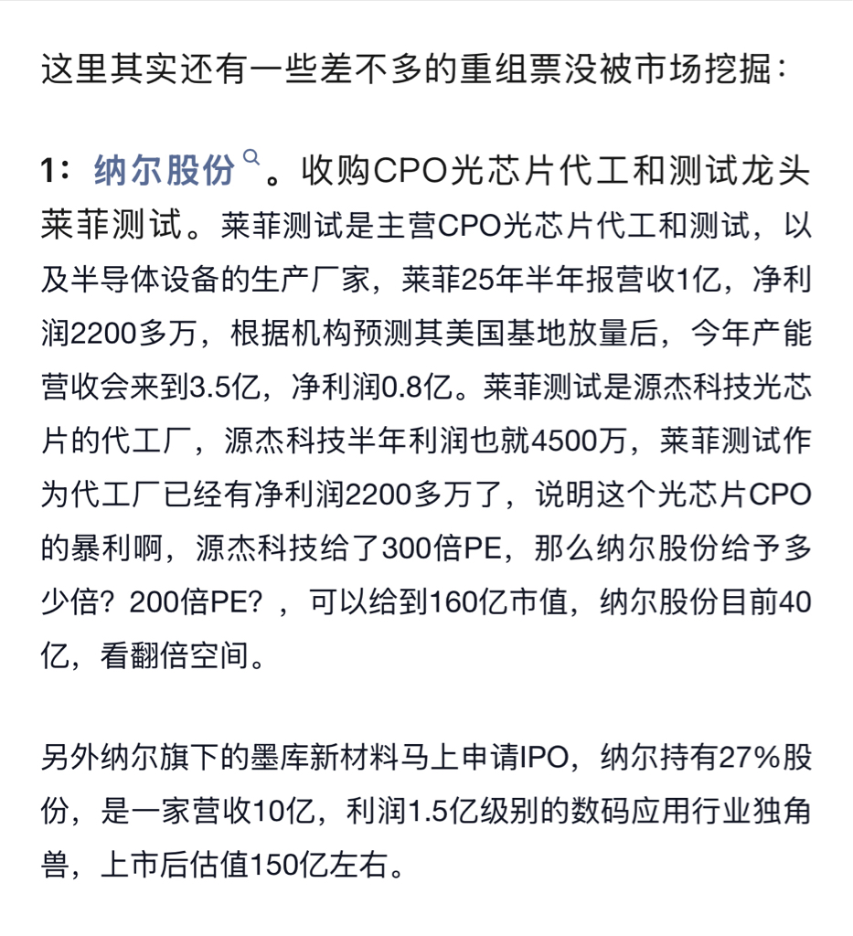 $纳尔股份(SZ002825)$ CPO光芯片叠加重组