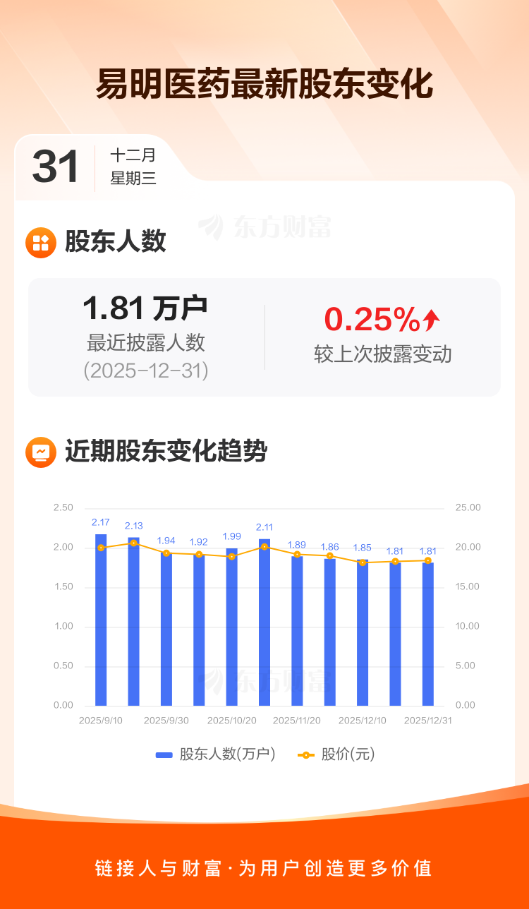 易明医药:截至12月31日最新股东户数1.81万户,较上期增加0.25%