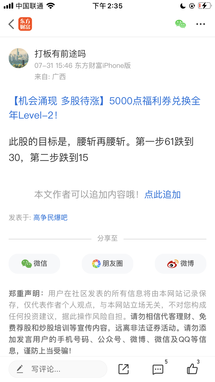 温馨提示: 1.根据《证券法》规定,禁止编造、传播虚假信息或者误导性信息,扰乱证券市场;2.用户在本社区发表的所有资料、言论等仅代表个人观点,与本网站立场无关,不对您构成任何投资建议。用户应基于自己的独立判断,自行决定证券投资并承担相应风险。《东方财富社区管理规定》