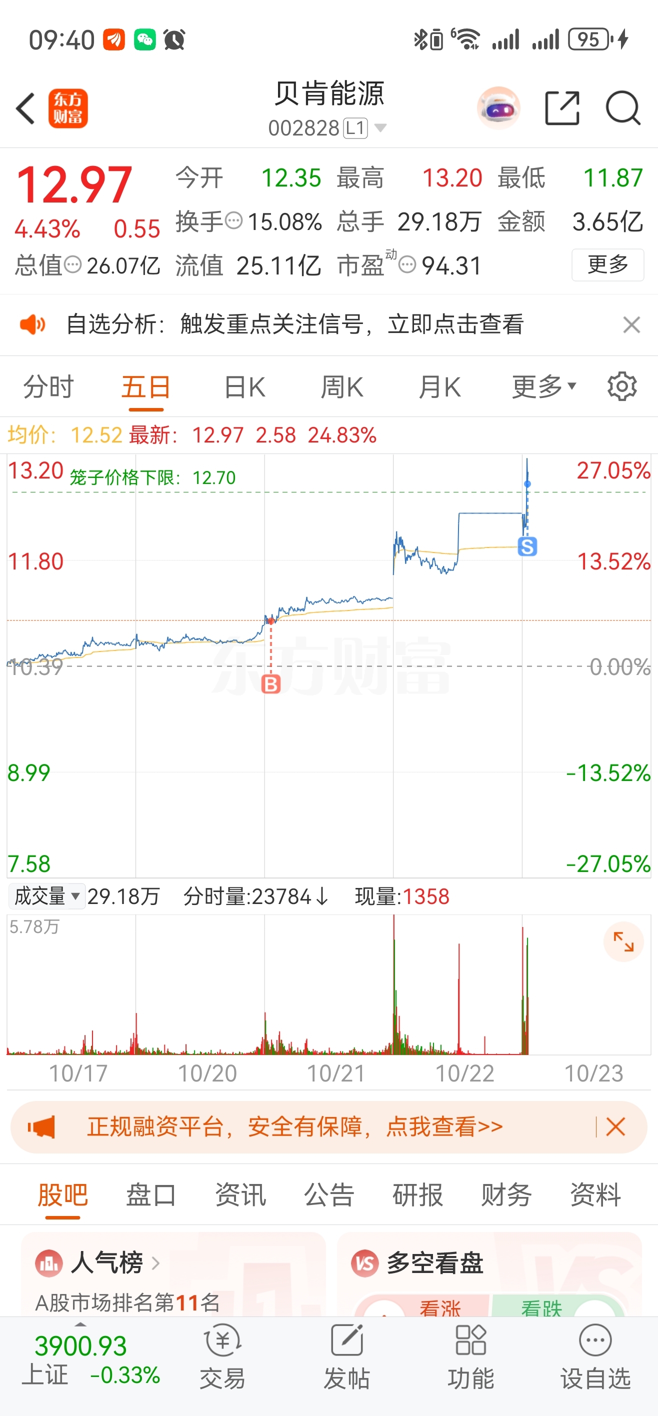 $贝肯能源(SZ002828)$ 先走了兄弟们,赚快17个点呀,该走了
