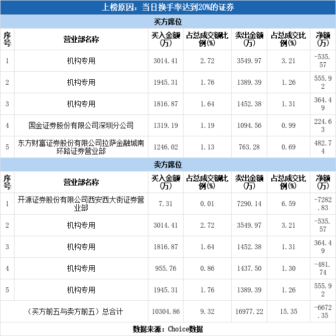 多主力现身龙虎榜,贝肯能源换手率达45.66%(10-23)