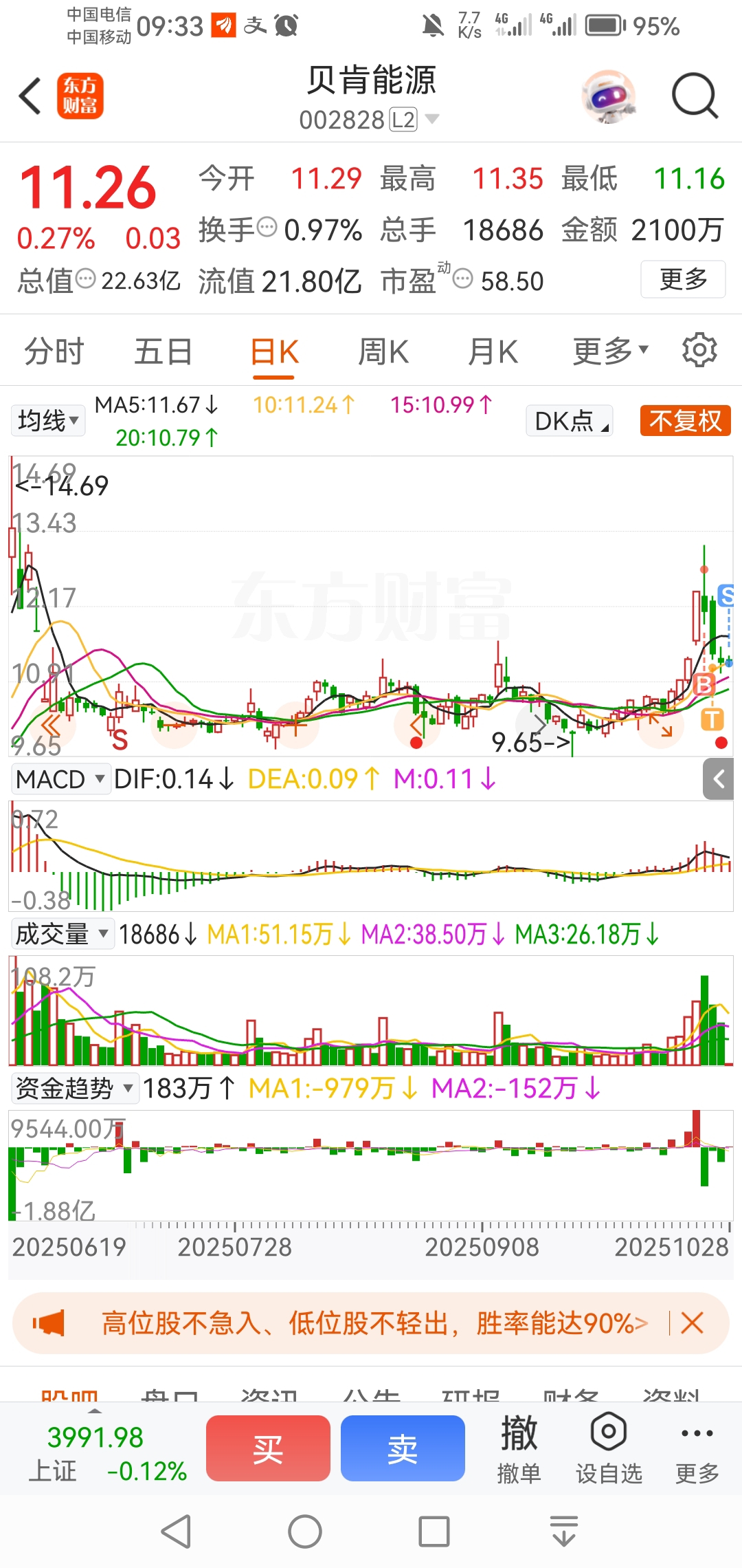 $贝肯能源(SZ002828)$ 开盘割了,三分之一仓位,好大一碗面,吃不下,根本吃不下