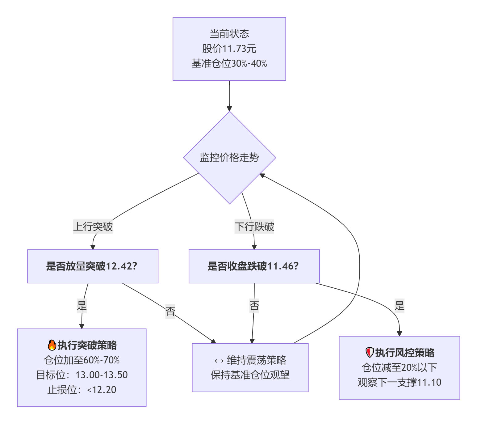 一句话总结: 持有基准仓位,向上突破12.42则加仓做多,向下跌破11.46则减仓防守。在区间内则耐心持有,等待市场选择方向。