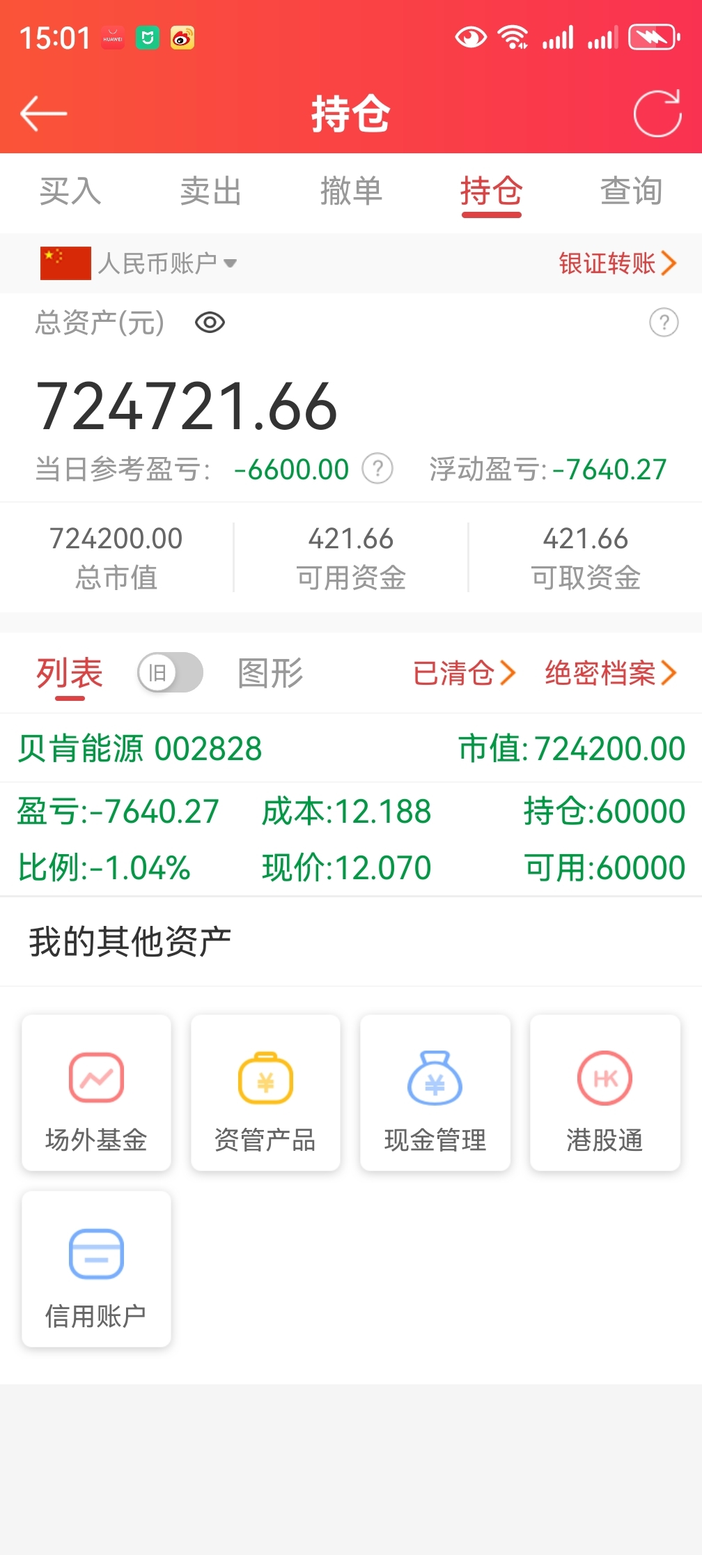 $贝肯能源(SZ002828)$ 目标50w一年300w,现持有贝肯能源。第15天