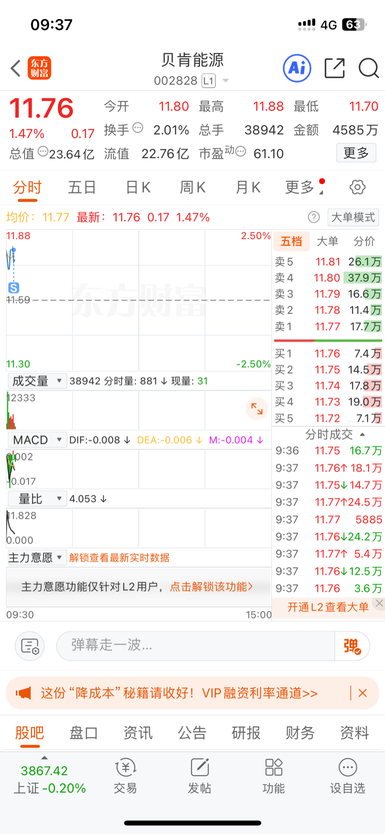 $贝肯能源(SZ002828)$ 车上的吃肉了吧!兄弟们先走了