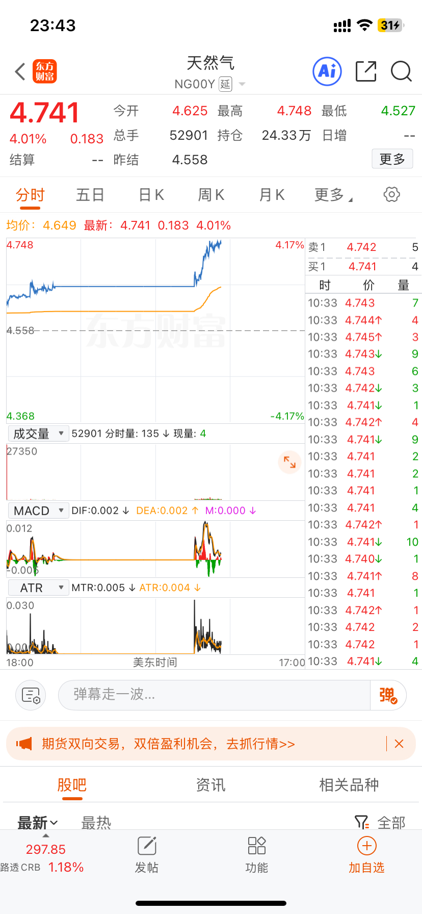 天然气期货大涨4个点!
