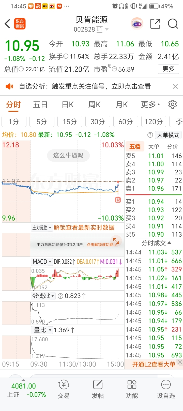 $贝肯能源(SZ002828)$ 兄弟们,对不起,是我来了没让他上去