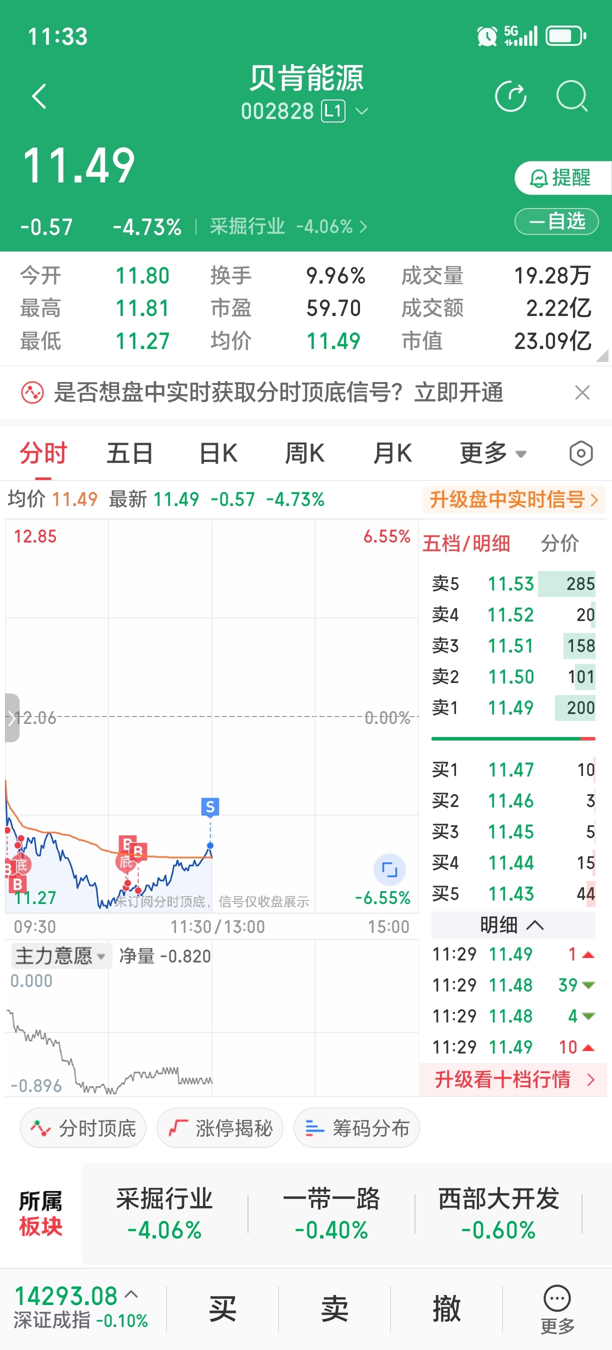 $贝肯能源(SZ002828)$ 继续做t降低成本