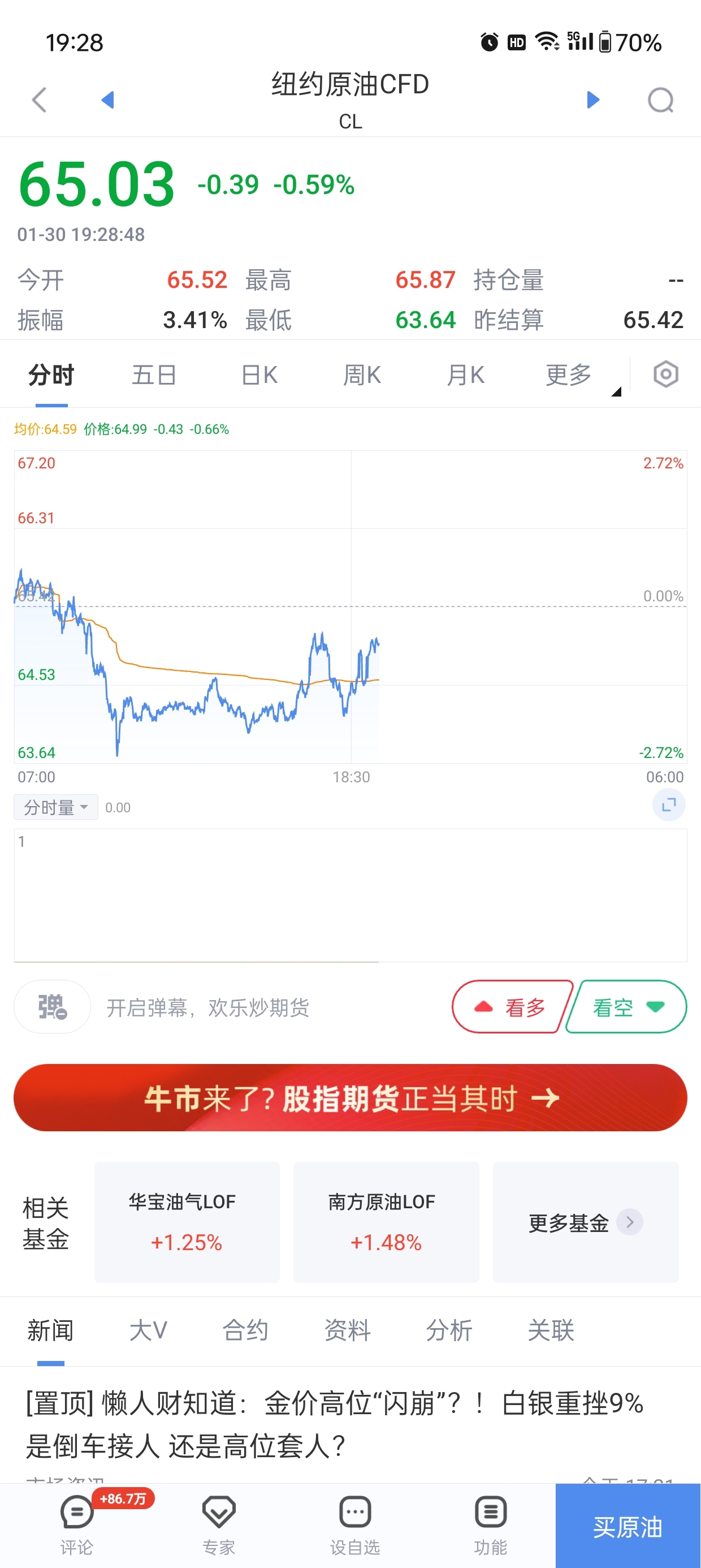 原油涨了!收盘时候是64美元现在是65