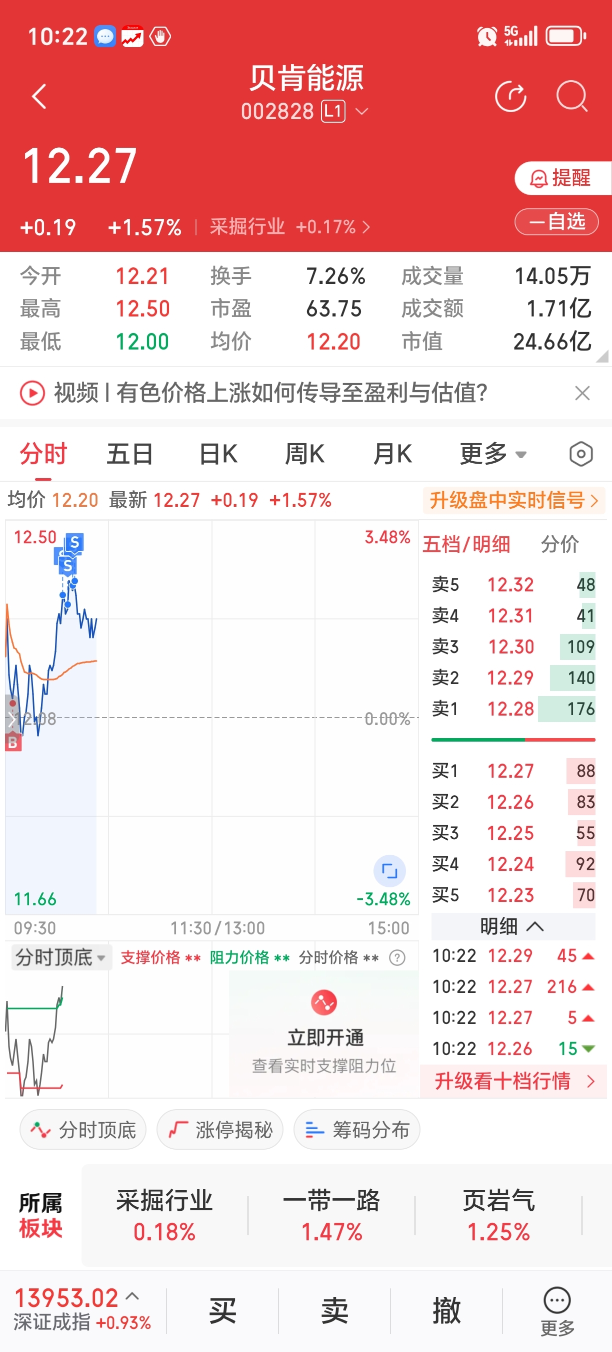 $贝肯能源(SZ002828)$ 每天一t今天12块没买到明天12以下买了t