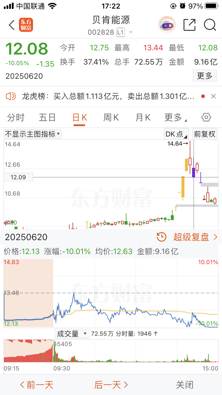$贝肯能源(SZ002828)$ 明天。怕不是要走6,20 走势。