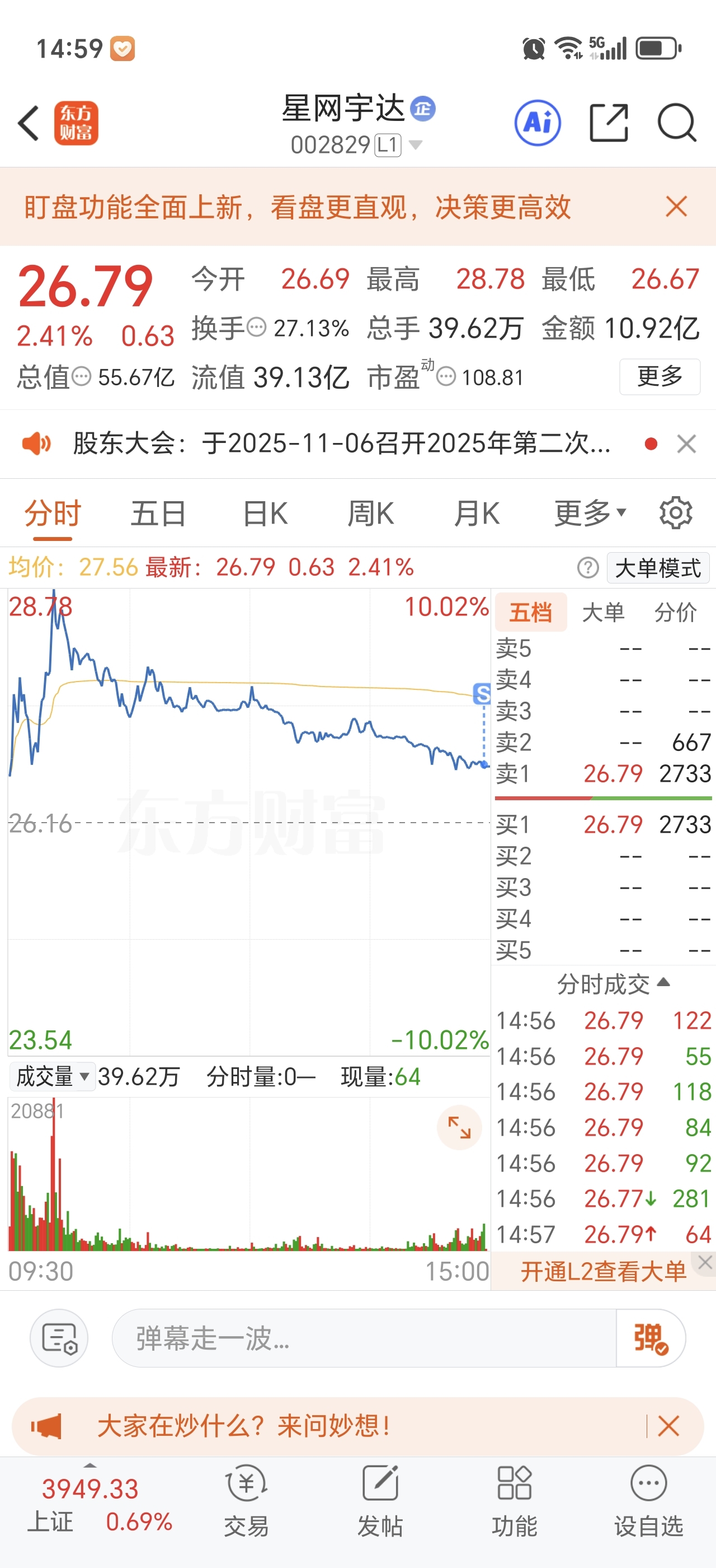 $星网宇达(SZ002829)$ 格局了一整天,结果你还是让我太失望了。
