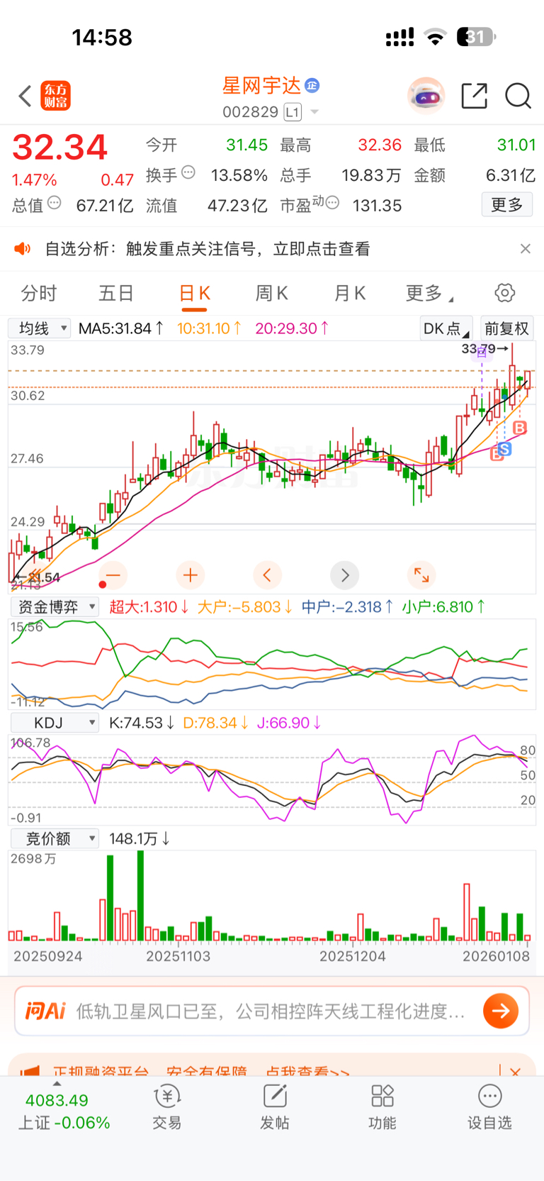 $星网宇达(SZ002829)$ 大哥我骗他们,我没走,明天别让我失望