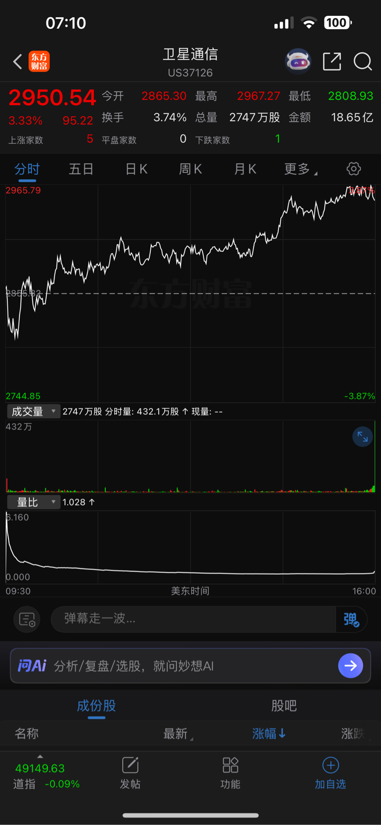 美股卫星通信大涨,跟不跟。