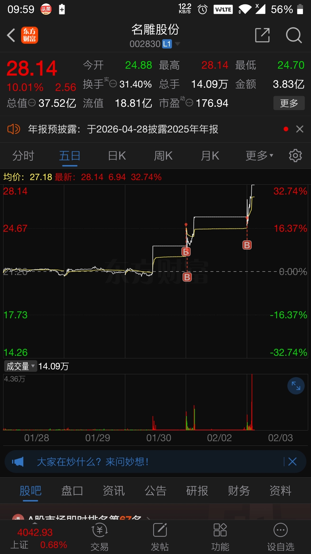 温馨提示: 1.根据《证券法》规定,禁止编造、传播虚假信息或者误导性信息,扰乱证券市场;2.用户在本社区发表的所有资料、言论等仅代表个人观点,与本网站立场无关,不对您构成任何投资建议。用户应基于自己的独立判断,自行决定证券投资并承担相应风险。《东方财富社区管理规定》