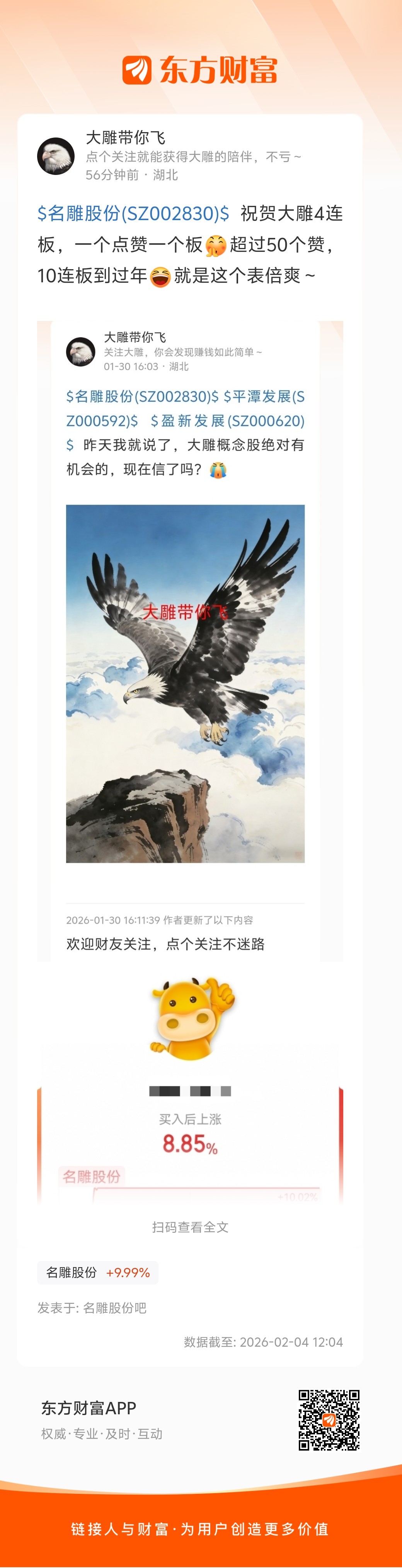 温馨提示: 1.根据《证券法》规定,禁止编造、传播虚假信息或者误导性信息,扰乱证券市场;2.用户在本社区发表的所有资料、言论等仅代表个人观点,与本网站立场无关,不对您构成任何投资建议。用户应基于自己的独立判断,自行决定证券投资并承担相应风险。《东方财富社区管理规定》