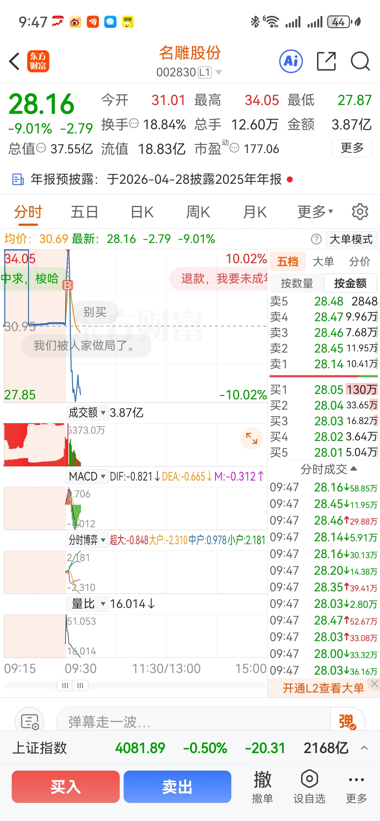 $名雕股份(SZ002830)$ 真不能碰,早上抽风了