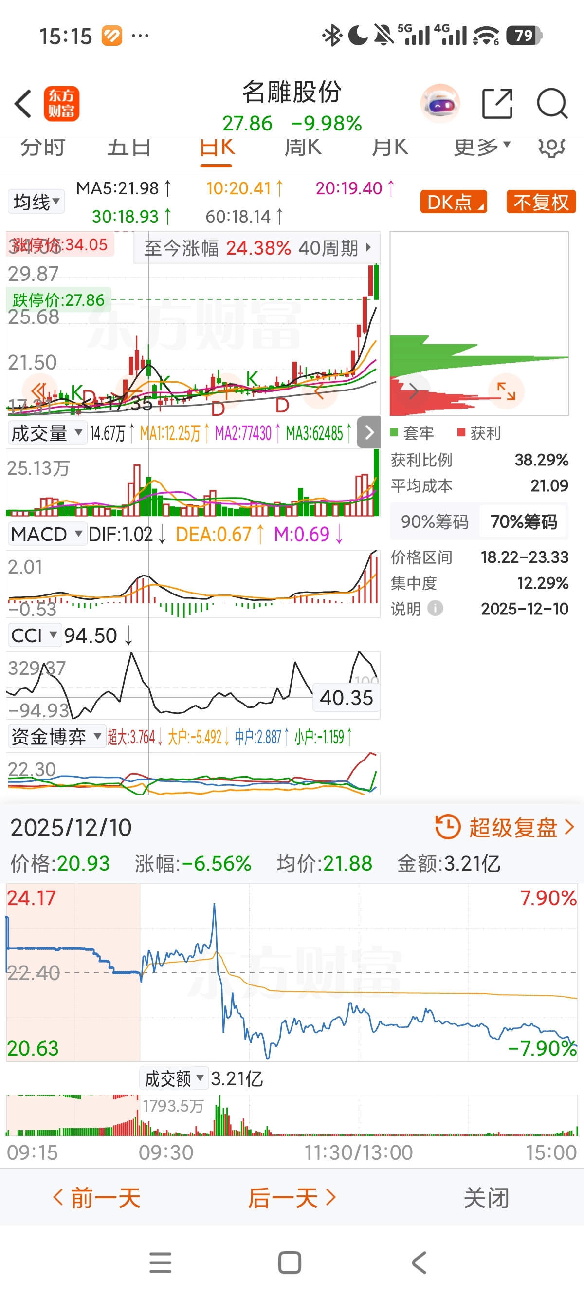 $名雕股份(SZ002830)$ 12月10日差不多走势,当天追高的一天损失十五个点