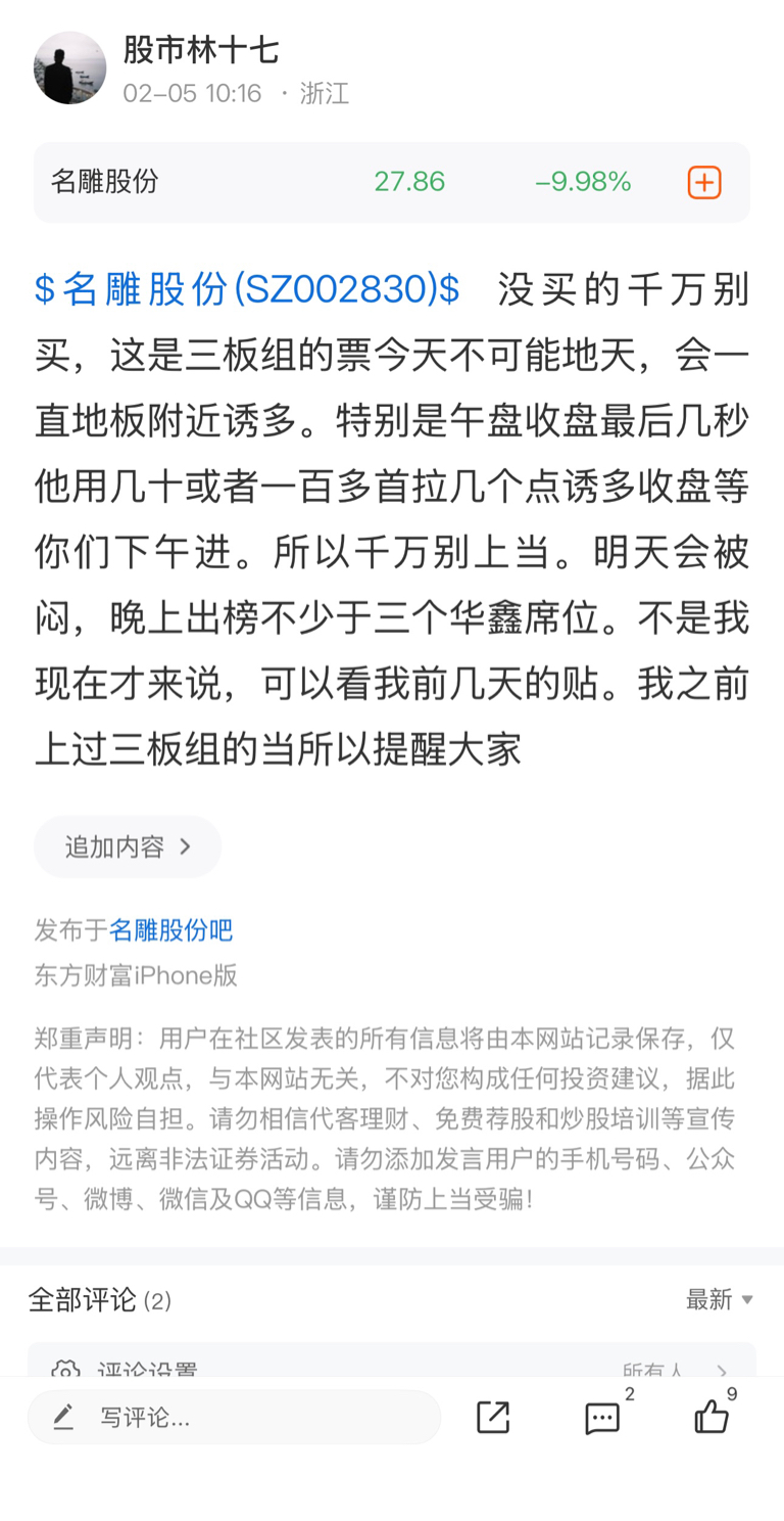 温馨提示: 1.根据《证券法》规定,禁止编造、传播虚假信息或者误导性信息,扰乱证券市场;2.用户在本社区发表的所有资料、言论等仅代表个人观点,与本网站立场无关,不对您构成任何投资建议。用户应基于自己的独立判断,自行决定证券投资并承担相应风险。《东方财富社区管理规定》
