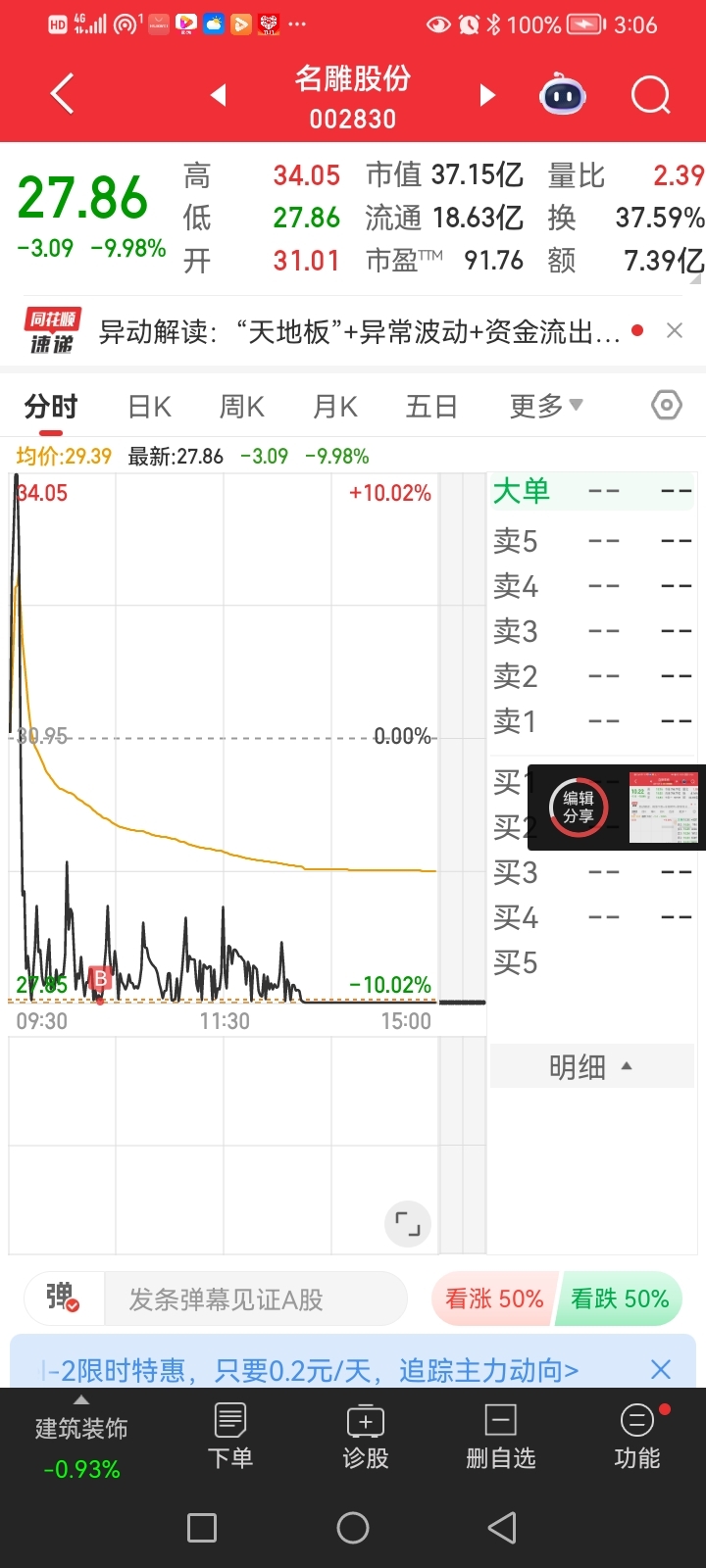 $名雕股份(SZ002830)$ 全仓一宿没睡