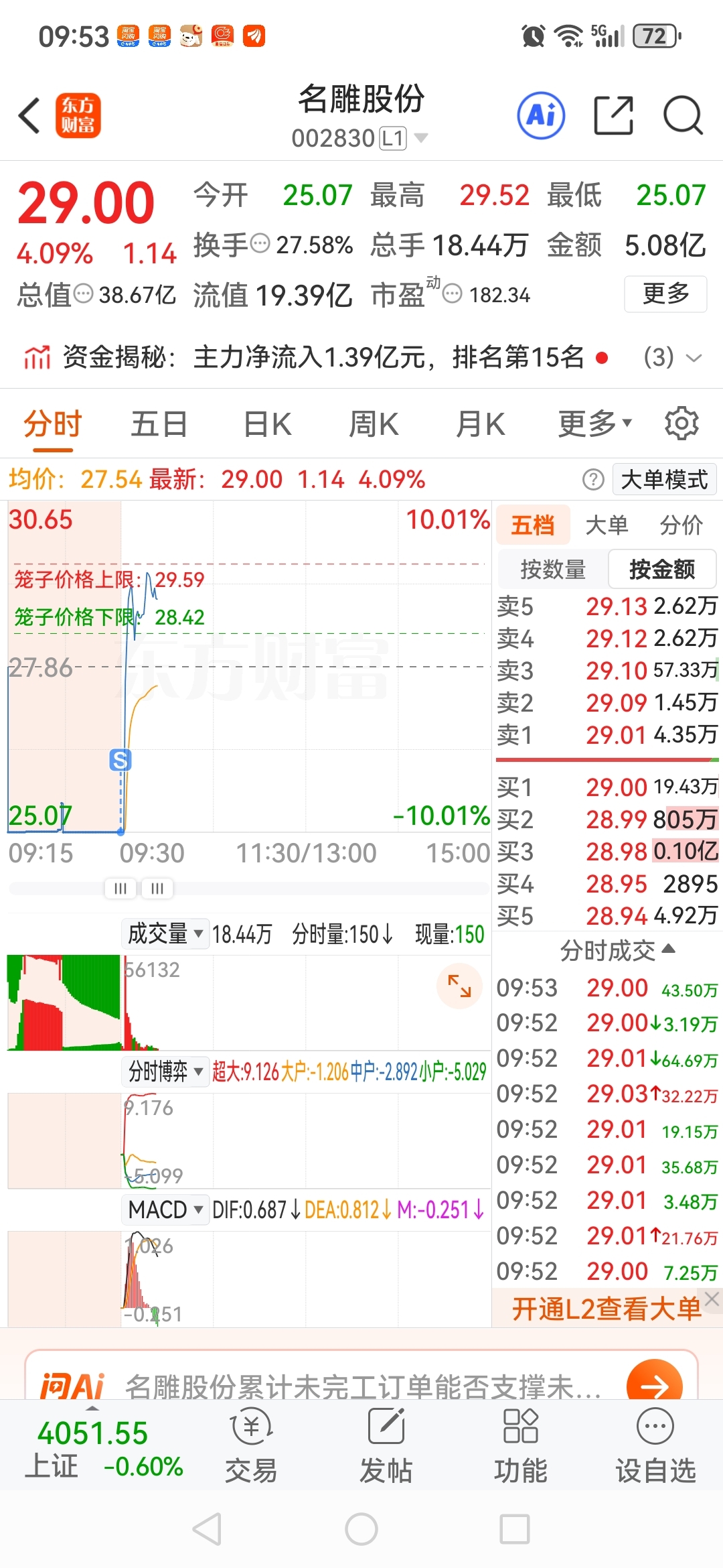 $名雕股份(SZ002830)$ 有谁开盘就卖的?真的服了啊!玩不过