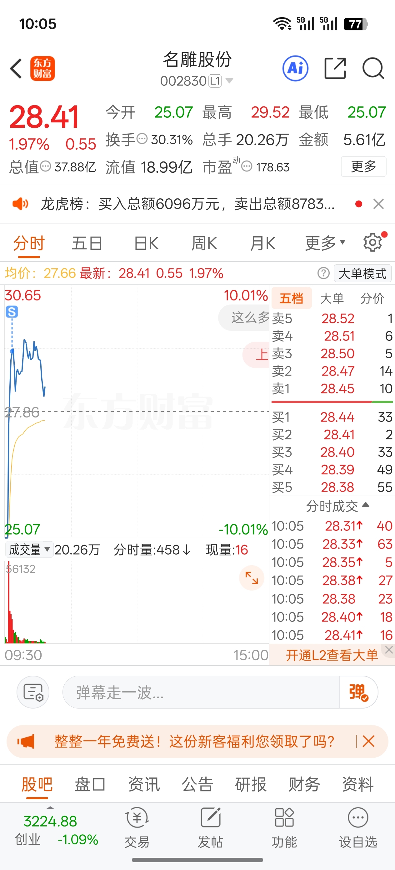 $名雕股份(SZ002830)$ 感谢主力给机会