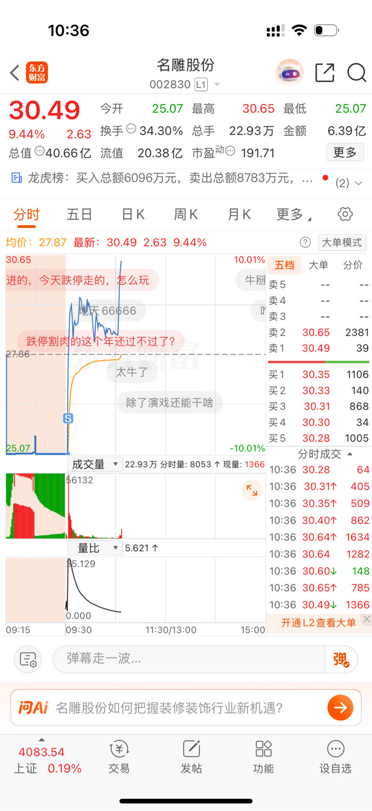 $名雕股份(SZ002830)$ 玩 刚挂单就起来