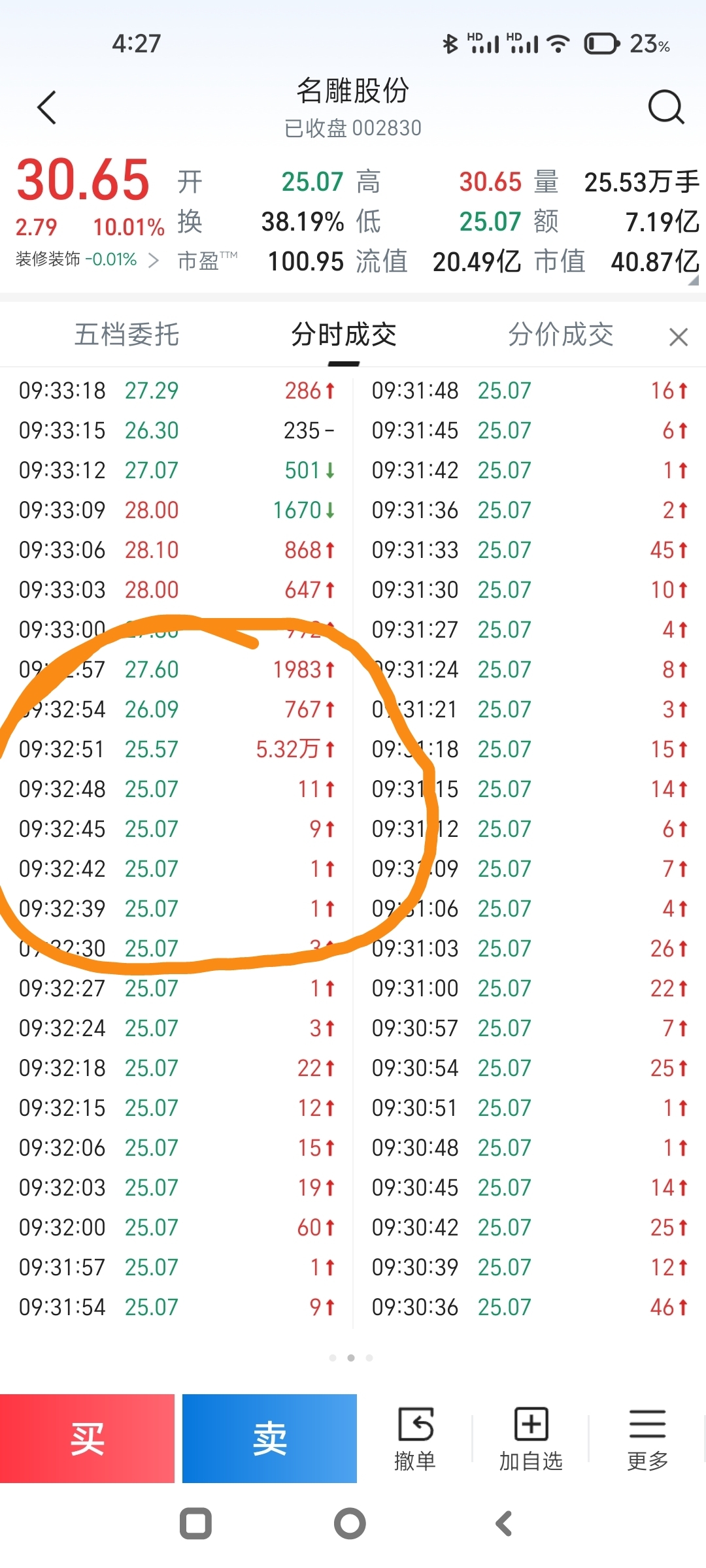 9:32:51这单成交5.32万手1.3亿怎么没上榜?要不就是榜上的同一时间下单撬板的(可是金额远远不够)