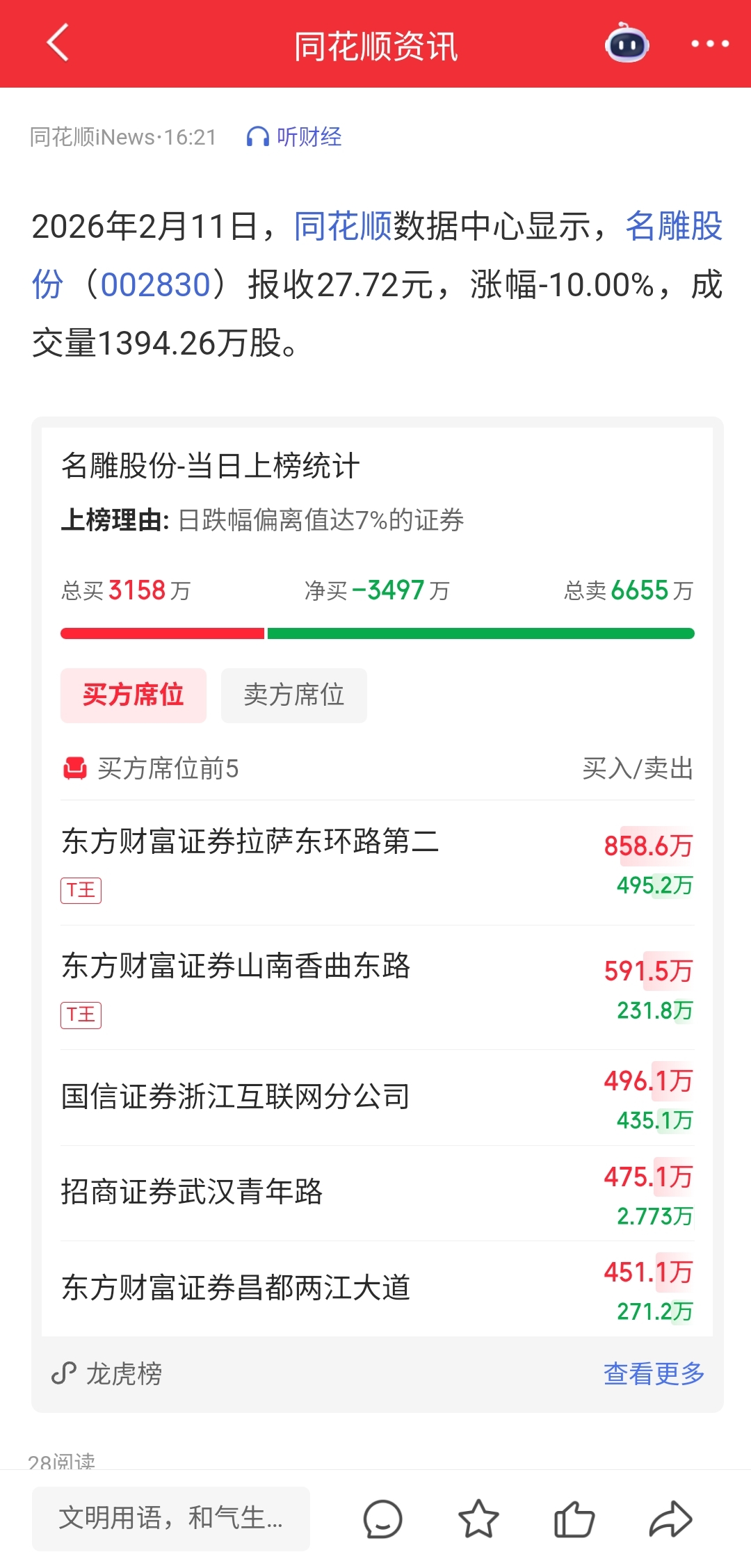 温馨提示: 1.根据《证券法》规定,禁止编造、传播虚假信息或者误导性信息,扰乱证券市场;2.用户在本社区发表的所有资料、言论等仅代表个人观点,与本网站立场无关,不对您构成任何投资建议。用户应基于自己的独立判断,自行决定证券投资并承担相应风险。《东方财富社区管理规定》