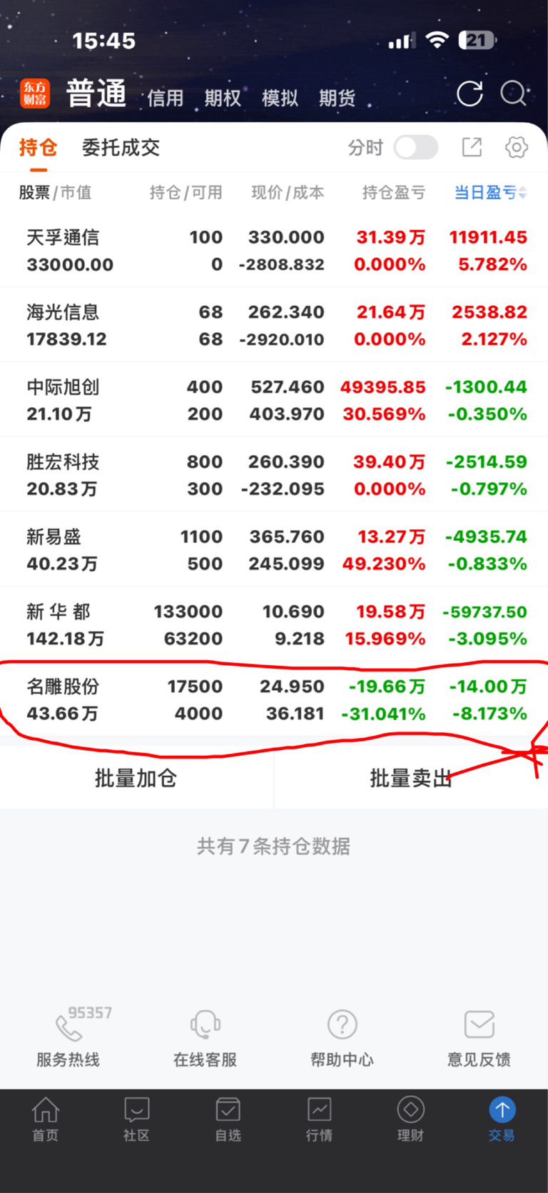 $名雕股份(SZ002830)$ 三天亏了20万元人民币