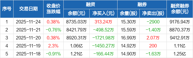 裕同科技:融资净买入313.24万元,融资余额8735.03万元(11-24)