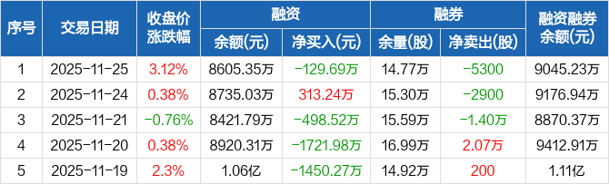 裕同科技:融资净偿还129.69万元,融资余额8605.35万元(11-25)