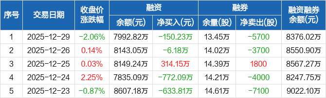 裕同科技:融资净偿还150.23万元,融资余额7992.82万元(12-29)