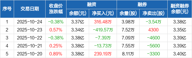 比音勒芬:融资净买入316.48万元,融资余额3.37亿元(10-24)